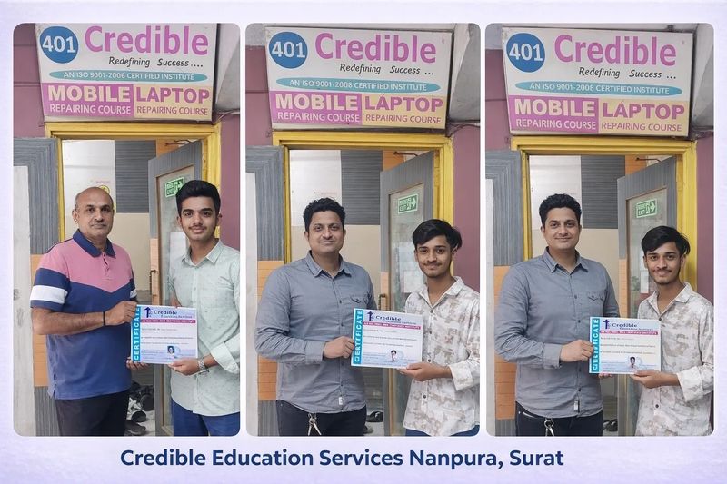 Credible Education Services in Surat is a premier institute offering industry-leading Mobile Repairing Course & Laptop Chip Level Repairing courses. Our training features intensive hands-on practice with live motherboards, advanced diagnostic tools, and expert-led schematic reading sessions. Designed for aspiring technicians, our curriculum ensures you master everything from basic hardware fixes to complex IC reballing. Start your professional career today at Surat’s most trusted technical skill center and gain the expertise needed for high-paying job opportunities or self-employment.